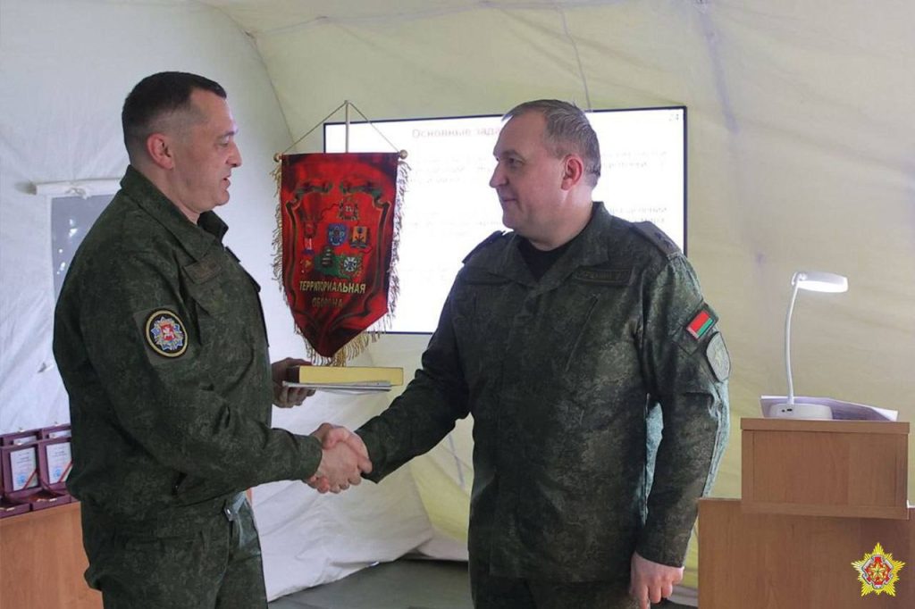 Министр обороны Республики Беларусь генерал-лейтенант Виктор Хренин наградил переходящим вымпелом за уровень подготовки территориальной обороны председателя Витебского облисполкома Александра Субботина